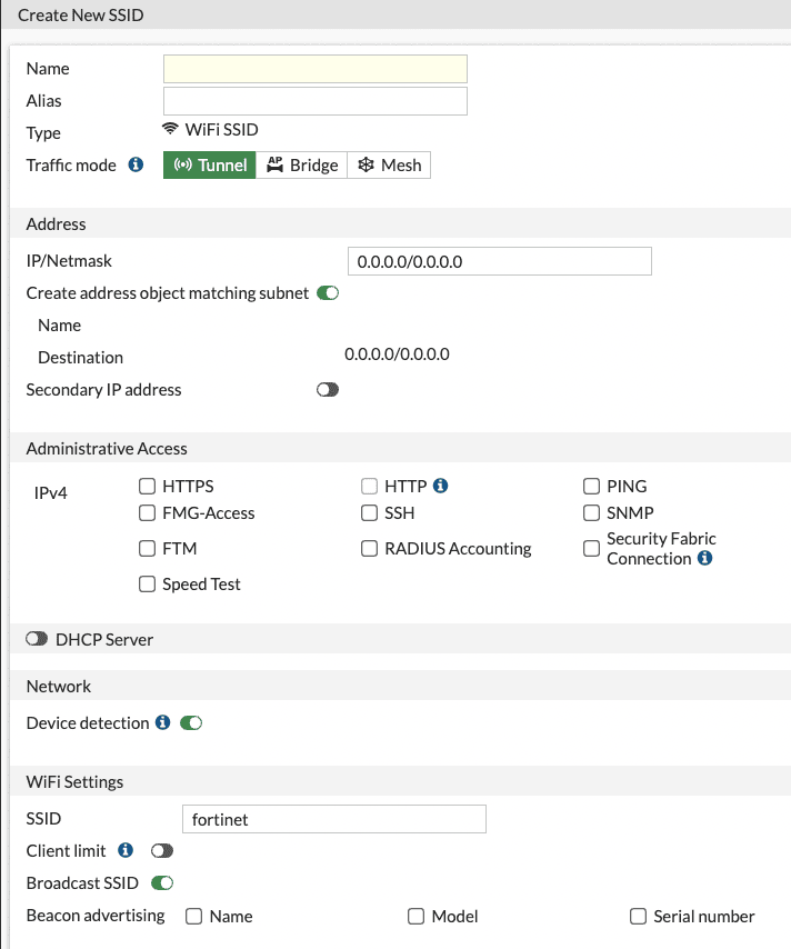 When you create an SSID, you’re creating a software interface and allowing traffic on that