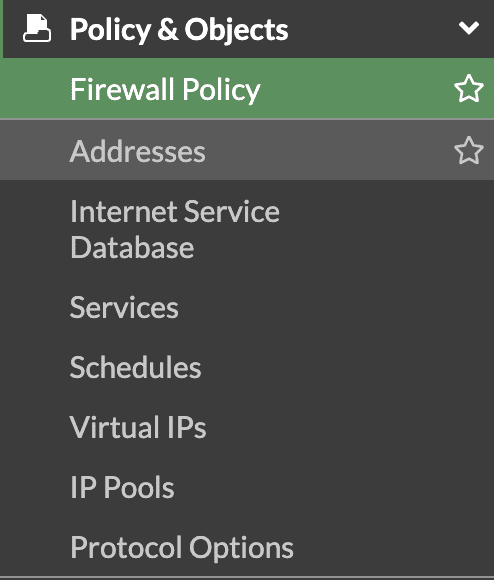 1. Select Policy & Objects and then Firewall Policy in the menu bar on the left of the dashboard.