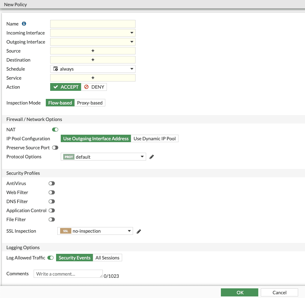 If the policy for the new SSID interface is missing or isn’t allowing access to the Internet,